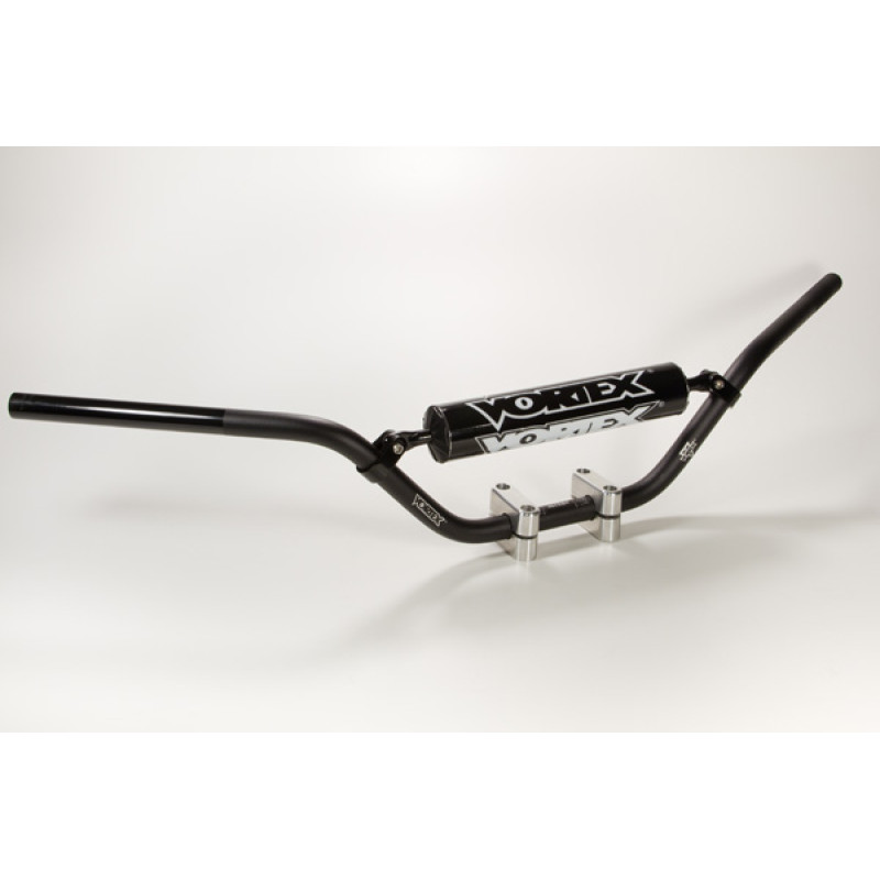 This is a very popular bend for both, purpose built chassis and DTX style Flat Track bikes. Now available in 7/8 for many older style or what used to be standard bar mounts. They come with a crossbar and pad.